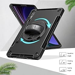 ★360 Degree Rotatable Kickstand and Hand Strap: The 360° rotating foldable kickstand offers multiple angles(30°/45°/60°) for watching movies, playing games, or typing and drawing. This handle grip is adjustable and swiveling, which helps to show your Tab S9+ to others with one hand during work, study, or travel, very suitable for students, teachers, engineers, and more users.