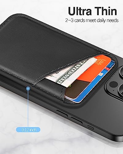 Slimmer Design: The thickness of this magsafe wallet is only 0.12 inch, which will not add unnecessary bulk to your phone at all; Ultra thin magsafe wallet makes you feel good while taking your cards without additional bulk