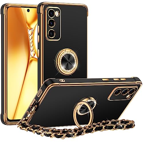 【Luxury and Stylish Design】Adorned with golden electroplated lining encircling the bumper and camera, this case adds a touch of elegance to your phone. This S20 fe case with diamond ring stand is the perfect fashionable gift for girls and women.