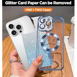 Unique”LOVE”Glitter Design:The phone case is electroplated with thickened edges to prevent have an effect on and give protection to your phone.2-in-1 design – detachable gradient glitter paper, freely switch between clear phone/ shiny phone cases