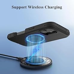 【Precise Cutouts】Precise cutouts provide you with easy access to all ports, speakers, camera, buttons and mics. And it supports wireless charging without taking off the phone case.The textured outshell for a secure grip keeps it from slipping and sliding around on other surfaces.It’s easy to grip and hold while not feeling bulky.