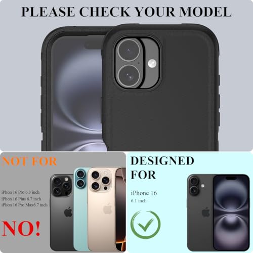 Compatibility:This rugged and durable phone case compatible with iPhone 16-6.1″ ONLY,NOT COMPATIBLE with other iPhone models..Please check your phone model before purchase.