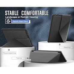 【Multiple Stand Angles】Foldable front cover with magnets help create vertical & horizontal viewing angles, providing comfortable typing, watching and viewing angles for your Kindle fire 10 tablet.