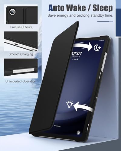 【Premium Material】- The galaxy tab a9 plus case is made of premium PU leather exterior, soft lining interior and hard PC back to protect your samsung galaxy tab a9 plus from scratches and reduce damage from accidental drops, providing good protection for daily use.