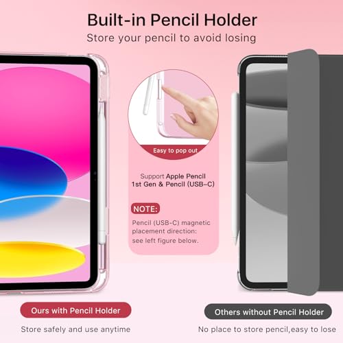 Built-in Pencil Holder: The ipad 11th generation case with pencil holder makes it easy to take hold of your Apple Pencil 1st Gen or Apple Pencil (USB-C) every time you want it, preventing you from losing them. Only Supports Apple Pencil USB-C magnetic attachment (Note: Pencil not included)