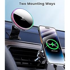 MOKPR for Magsafe Car Mount Charger-15W Wireless Car Charger-Magnetic Car Phone Holder for Dash Air Vent-LED RGB HandsFree Car Mount Fast Car Charger for iPhone 14/13/12 Series