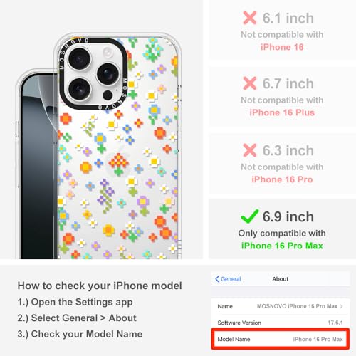 MOSNOVO Case for iPhone 16 Pro Max, [Buffertech 6.6ft Military-Grade Drop Protection] [Anti Peel Off Tech] Clear TPU Bumper Phone Case Cover Design – Pixel-Floral