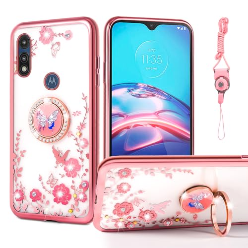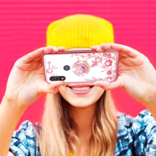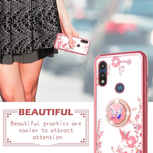 nancheng for Moto E 2020 Case, Moto E7 Glitter Luxury Sparkles Soft TPU Silicone Slim Cute for Women Girls with Kickstand, Bling Diamond Ring Stand Case for Moto E 2020-Rose Gold