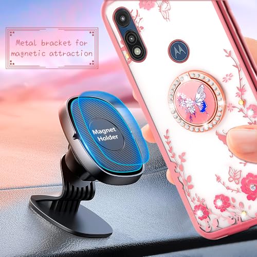 【Unique Ring Kickstand】Supports 360 degree rotating and 180 degree folding, can used as kickstand, allowing hands-free, the usage of your Moto E 2020 from any angles comfortably. Please Note: There’s a piece of hidden iron inside the center of the houlder ring, which allows to put it on a magnet car mount all over