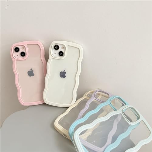 NAOKIFU Compatible for iPhone 16 Case Clear Cute Curly Wave Frame Shape for iPhone 16 Phone Cases Shockproof Soft Protective Phone Cover for Women Girls Phone Cover Clear Design