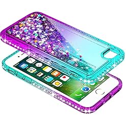 NGB Designed for iPhone 5/5S/iPhone SE (1st Generation 2016) Case, Aqua/Purple | Glitter Liquid Cute Cover for Women Girls Kids | with Tempered Glass Screen Protector & Ring Holder & Wrist Strap