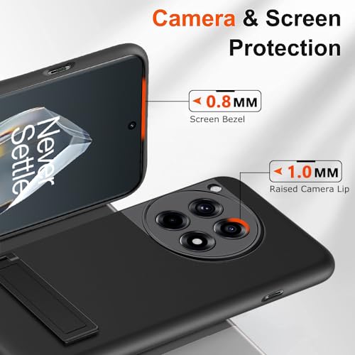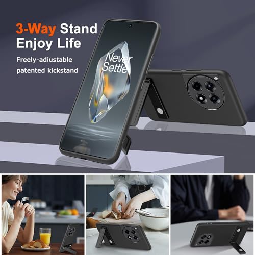 Nijiadi for OnePlus 12R 5G/OnePlus Ace 3 Phone Case with Glass Screen Protector [3 Stand Ways] Metal Kickstand/Stand Silicone TPU Shockproof Protective Cover Case for OnePlus 1+12R 5G 2024 – Black