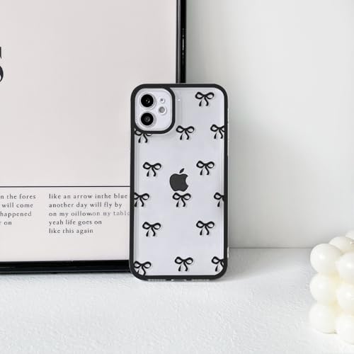 NITITOP Compatible with iPhone Case Cute Clear Durable Ribbon Bowknot Pattern for Girls Women Soft TPU Transparent Full Camera Lens Shockproof Protective Phone Cover