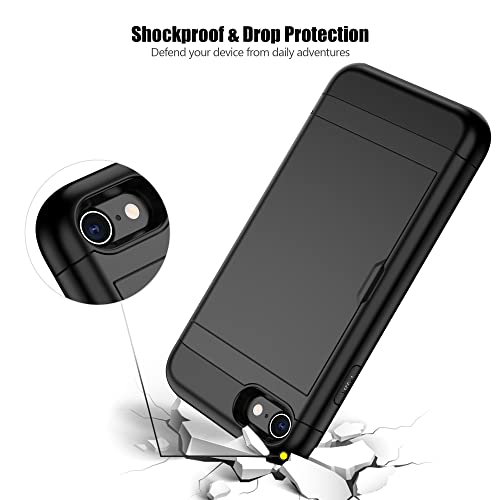 Nvollnoe for iPhone SE Case 2022/iPhone SE 2020/7/8 Case with Card Holder Heavy Duty Protective Dual Layer Shockproof Hidden Card Slot Slim Wallet Case for iPhone SE 3rd/2nd/7/8-4.7”