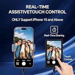 IMPORTANT NOTE: 1. This Monitor only give a boost to iPhone 15 and Above models. The touch screen is not multi-touch but AssistiveTouch. When AssistiveTouch is enabled, the touch point functions like a mouse cursor on the screen. Please practice the use of it repeatedly to get comfortable with the touch controls; 2. The 3.5 headphone jack on the monitor currently only give a boost to headphone, not for microphone (to be up to date later this year).
