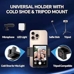 【Universal Phone Holder】Equipped with a flexible phone holder, extendable from 3.15-4.33inch. Compatible with iPhones. With the 1/4″ screw hole, you’ll be able to easily attach additional accessories such as microphones, LED lights, or even a selfie stick.