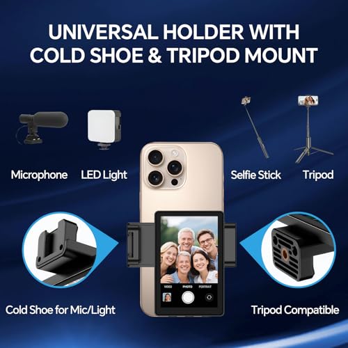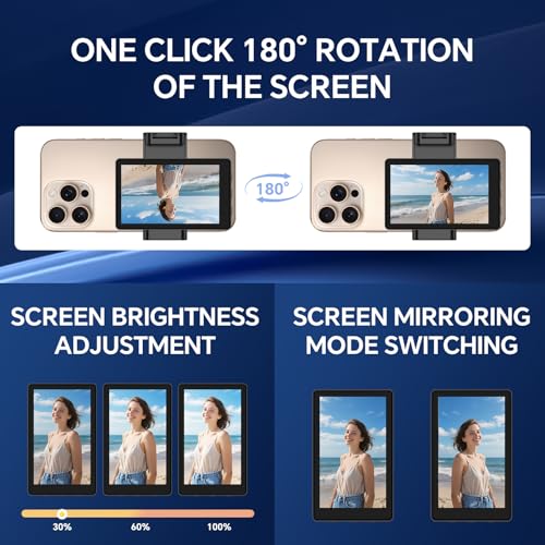OmniMaster Phone Vlog Selfie Monitor AssistiveTouch Screen, Magnetic Phone Holder Clip Mount, Supports 4K120FPS, Rear Camera for Selfie Vlog Or Live Stream (Wire Connection Only)