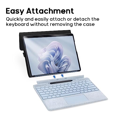 【Multi-Angle View and Built-in Stylus Pen Holder】Supporting the kickstand of Surface Pro 9, you’ll place Surface Pro 9 at any angle you want, identical to the original design. whilst built-in stylus holder, no more worrying about losing your Surface Pen whilst at the go.