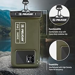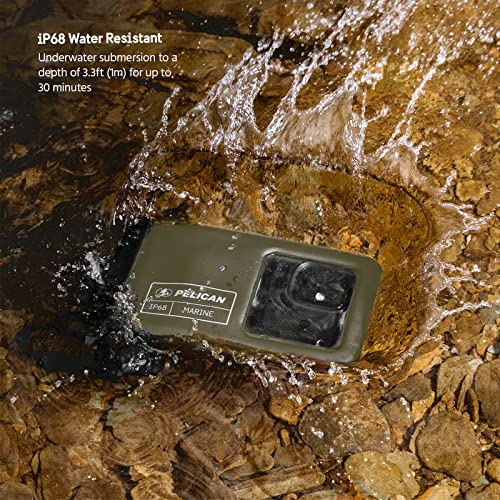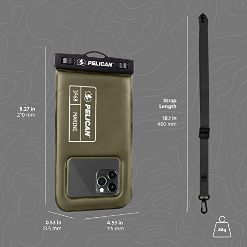 Pelican Marine – IP68 Waterproof Phone Pouch/Case (Regular Size) – Floating Waterproof Phone Case – iPhone 14 Pro Max/ 13 Pro Max/ 12 Pro Max/ 11/ S23/ Pixel 7 – Detachable Lanyard – Olive Green