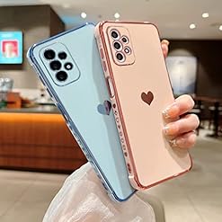 phylla Compatible with Samsung Galaxy A23 6.6″ Phone Case Plating Gold Cute Heart Cover with Camera Protection Soft Silicone Shockproof Bumper for Samsung Galaxy A23 4g/5g Universal (Blue)