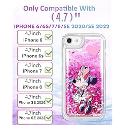 Fashion Liquid Design: Cute cartoon character design,sparkling color sequins and fun bling liquid quicksand, sequins could flow freely inside to make your for iPhone6/iPhone6S/iPhone7/iPhone8/iPhoneSE/iPhoneSE 2020/iPhoneSE 2022 looks very unique and fashionable.It’s a ideal gift for women,girls,teen girls,kids,kid boys and friends.