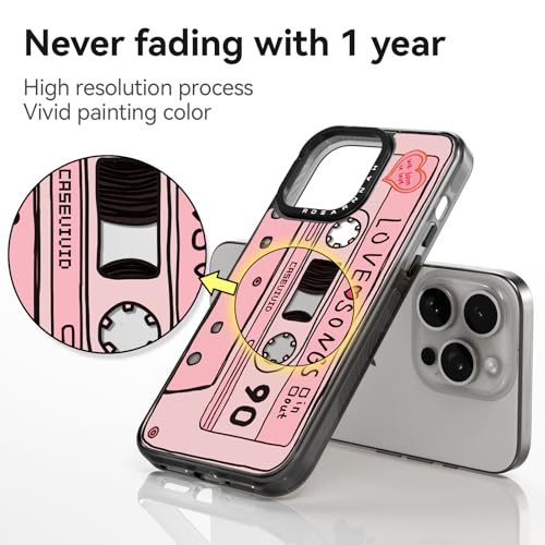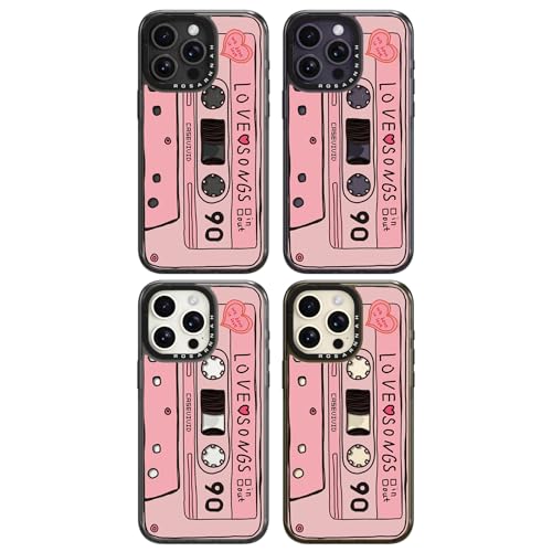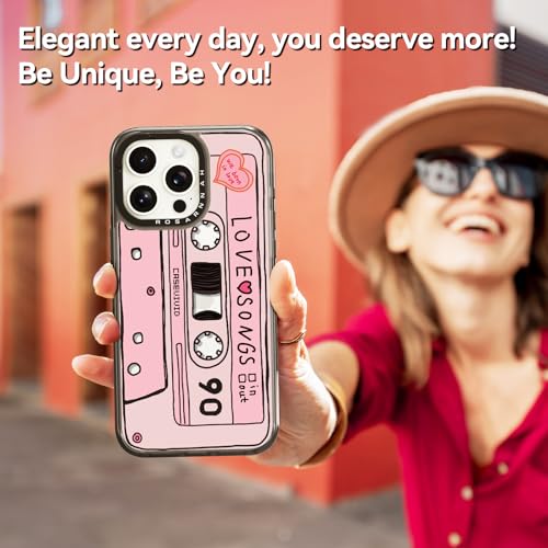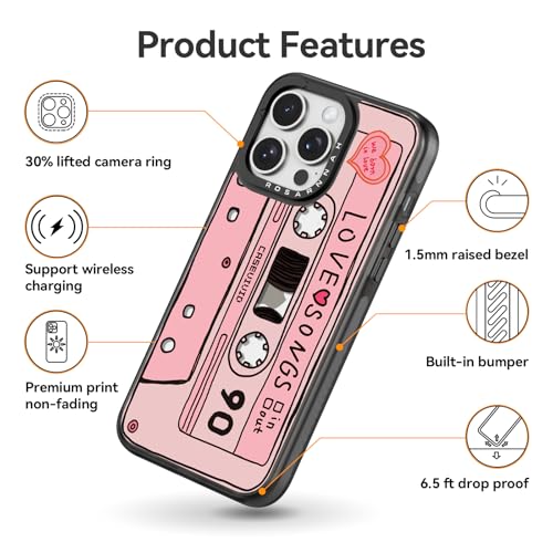 Rosarnnah Compatible for iPhone 14 Pro Max Case Cute Aesthetic – Durable Shockproof 6.6 ft Drop Impact Phone Case Cover with Funny Fashion Cassette Tape Design 6.1″ Black