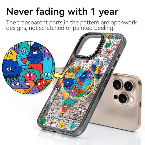 Rosarnnah Compatible for iPhone 16 Pro Case Cute – Durable Shockproof 6.6 ft Drop Impact Phone Case – Black Funny Graffiti Arts Design for iPhone 16 Pro 6.3″