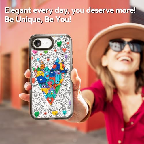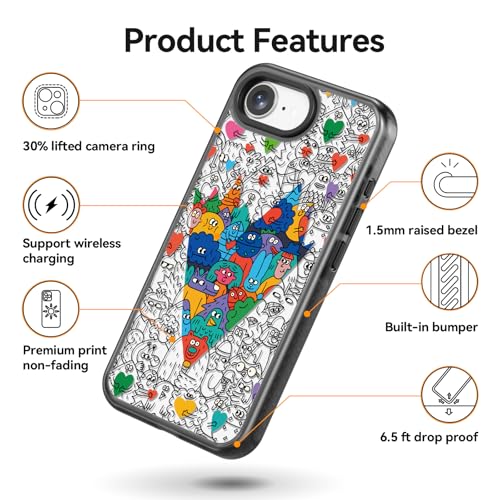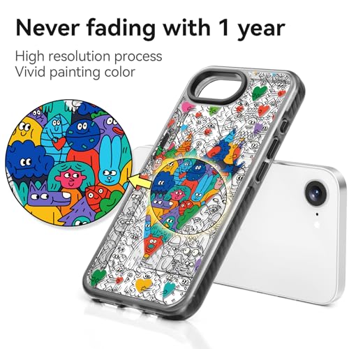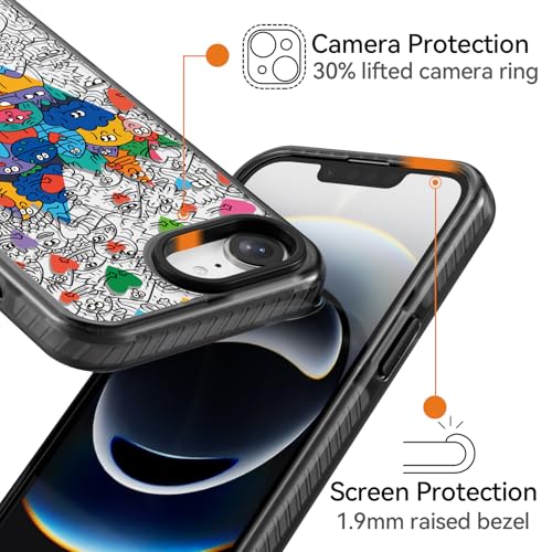 Rosarnnah Compatible for iPhone 16E Case Cute – Durable Shockproof 6.6 ft Drop Impact Phone Case – Black Funny Graffiti Arts Design for iPhone 16 SE 4 6.1″