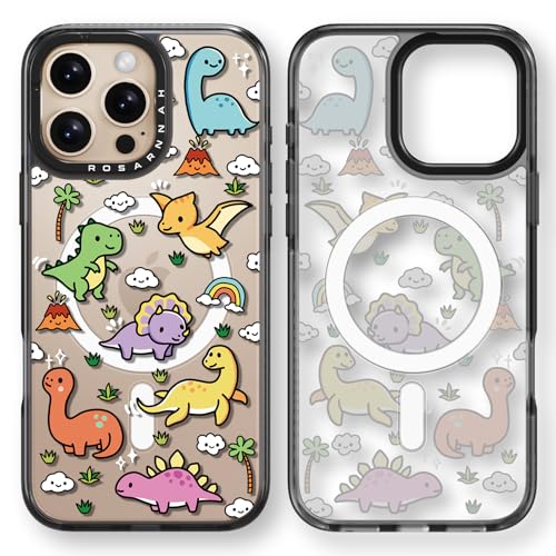 Rosarnnah Magnetic for iPhone 16 Pro Magsafe Case Cute – Durable Shockproof 6.6 ft Drop Impact Phone Case – Black Funny Baby Dinosaur Design for iPhone 16 Pro 6.3″
