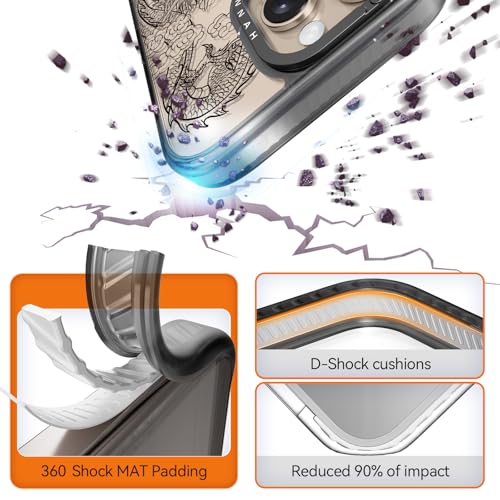 Rosarnnah Magnetic for iPhone 16 Pro Magsafe Case Cute – Durable Shockproof 6.6 ft Drop Impact Phone Case – Black Funny Dragon Design for iPhone 16 Pro 6.3″