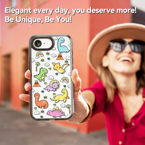 Rosarnnah Magnetic for iPhone 16E Magsafe Case Cute – Durable Shockproof 6.6 ft Drop Impact Phone Case – Black Funny Baby Dinosaur Design for iPhone 16 SE 4 6.1″
