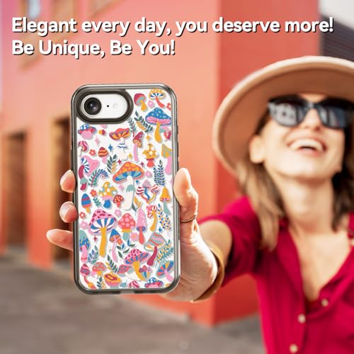 Rosarnnah Magnetic for iPhone 16E Magsafe Case Cute – Durable Shockproof 6.6 ft Drop Impact Phone Case – Black Funny Mushroom Jungle Design for iPhone 16 SE 4 6.1″