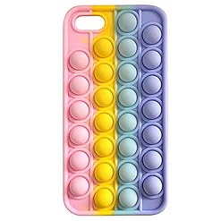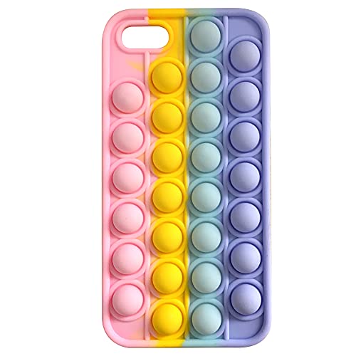 SDTEK Case Compatible with iPhone SE (2016-2019) 5 5s, Bubble Soft Silicone Pop Fidget Case (Rainbow)