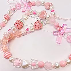 Showkanbay Phone Charms Strap Pink Cute Aesthetic Love Phone Chain Girl Pearl Beaded Lanyard Jewelry (Strawberry)