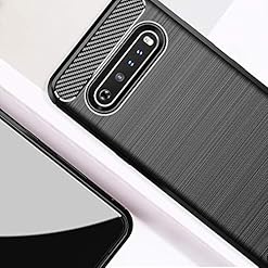 SNOSHO for LG V60 ThinQ Phone Case,Slim Thin Flexible TPU Rubber Silicone Anti-Scratch Shockproof Carbon Fiber Protective Cases Cover for LG V60 ThinQ,Brushed Black
