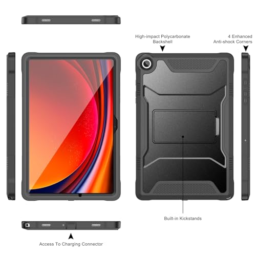 Soke Case for Samsung Galaxy Tab A9 Plus 2023, with Built-in Screen Protector and Kickstand, Rugged Full Body Protective Cover for Galaxy Tab A9+ 11 Inch Tablet [SM-X210/X216/X218],Black