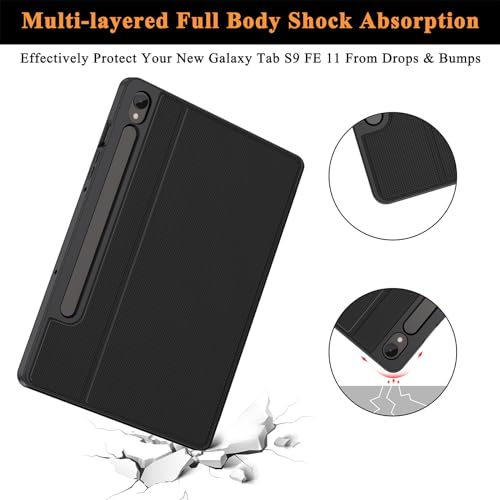 Soke Case for Samsung Galaxy Tab S9 FE 5G 2023 – Shockproof Stand Folio Case,Multi-Viewing Angles,Soft TPU Back Cover for Galaxy Tab S9 FE 10.9 inch Tablet,Black