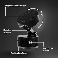 Statik HyperMount Vacuum Phone Mount – Magnetic Phone Holder, Vacuum Seal Cellphone Mount, Use It on Smooth Surfaces, Compatible with Apple MagSafe, Magnetic Rings Included for Android Devices
