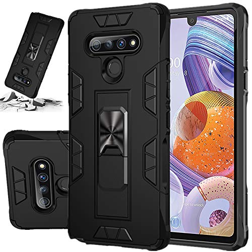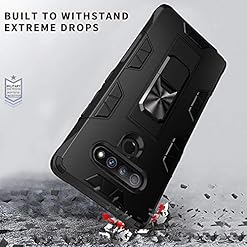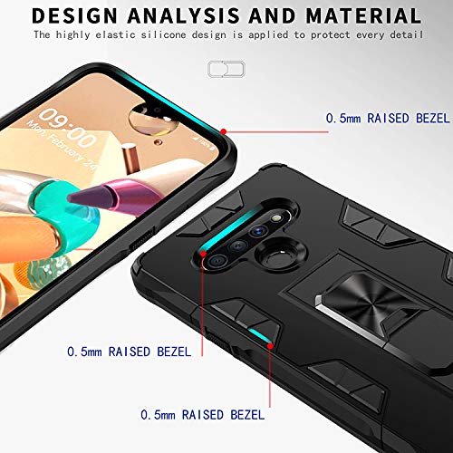 STORM BUY Phone Case for [ LG K51 / Q51 / LG Reflect ], Heavy Duty Armor Back Cover with [Shock Absorption] Protection, Kickstand Ring Black Case for LG K51-IRBK