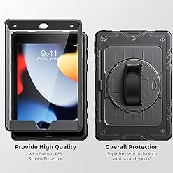【360°Rotating Kickstand & Hand Strap】Rotatable kickstand easily support your iPad in multi-angle viewing. Moreover,the soft hand strap allows you to hold your iPad firmly and comfortably to prevent accidental drops.And your kids can use iPad easily and safely to study or watch movies.