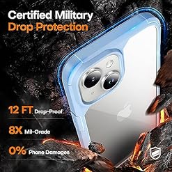 【15FT Military-grade Protection】TAURI for iPhone 15 Case is certified drop test, combines a soft-frame and hard PC back cover with 4 built-in corner Airbags to absorb impact, can prevent your phone from accidental drops, bumps and scratches