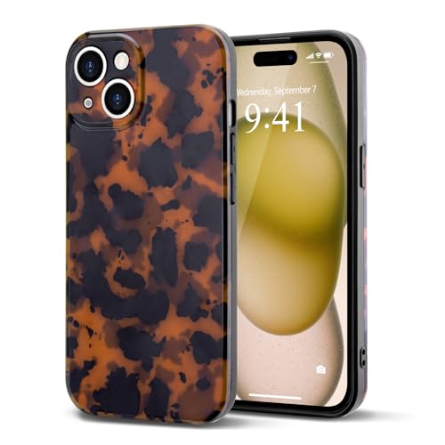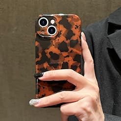 Teageo Aesthetic Tortoise Shell Phone Case for iPhone,Retro Cool Girl Leopard Print Brown Amber Trendy Full Camera Protective Cover for iPhone