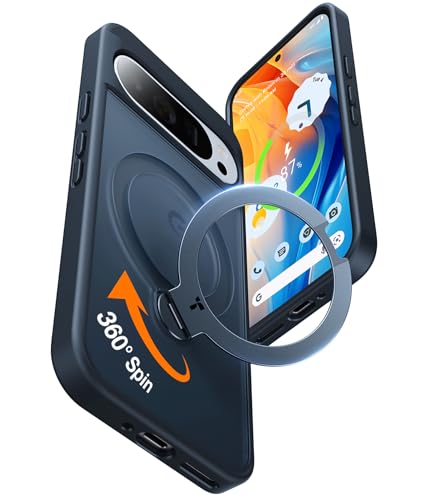 TORRAS 360°Spin Magnetic Stand for Google Pixel 9 Pro Case/Pixel 9 Case, 12FT Military Protection, Compatible with Magsafe, Shockproof Translucent Slim Pixel 9 Pro Phone Case with Ring Holder, Black