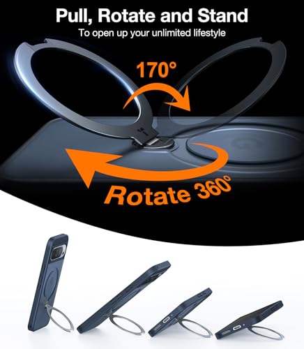 Pioneering 360° Spin Stand: Stable, adjustable, and durable. The spin stand offers flexible angles from vertical to horizontal, providing unlimited positions and a super stable placement. The Google Pixel 9 Pro Case with stand undergoing 18,000 rotation tests, it brings a new level of freedom to your phone experience