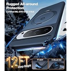 Protective to Date of 12FT: Gone are the days of thick and bulky cases. This shockproof case for Google Pixel 9 Pro quickly snaps into place and fits snugly without adding bulk, protecting your phone from scratches and drops. With raised edges around cameras and screen bezel, and MIL-STD drop protection, it absorbs 98% of impact force, letting you explore the world without limits