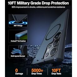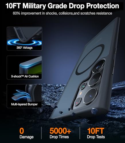 【Millitary Grade Drop Protection】TORRAS takes the upgraded design to protect all corners. The screen lips rise 1.2mm and the camera edges lift 1.2mm. What‘s Exclusive, TORRAS incorporated a 360° Air cushion into the insides of the camera. It protects the Samsung s24 ultra case sufficiently from all drops, collisions, and shocks without any damage. It efficiently offers fumble, bumble, and tumble resistance.