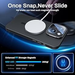 [20W Quick Charging Experience & ZERO POWER LOSS] Perfectly aligned magnets make wireless charging faster yet safer and smoother than ever, getting a magical attach-and-detach charging experience. The iPhone 13 Case/iPhone 14 Case is suited for all third-party Qi-certified wireless chargers. It built-in 48pcs Ultra-Mag Ring Array ensuring almost 0% POWER LOSS in wireless charging, and no power fading from heat. It shortens overall charging time and further improves your wireless experience.