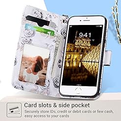 iPhone SE Wallet 2020 act as a convenient purse with a removable wristlet strap and multi card slots include on see-through slot for I.D. Card, credit card, and cash for on the go people