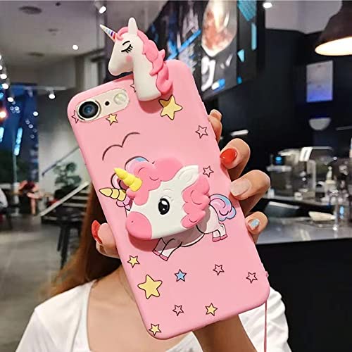Unicorn Case Compatible with iPhone 6/6S 4.7”, 3D Cartoon Design Cute Elastic Kickstand Protective Case, iPhone 6 Case iPhone 6S Case with String Rope, Kawaii Fashion for Kids Child Teens Girls Women