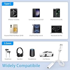 【Universal Compatibility】This headphone audio adapter compatible with most of the type c phones Compatible with iPhone 16/iPhone 16 Pro/ iPhone 15/ 15 Pro/ 15 Pro Max, Galaxy S21 Ultra/ S21 Plus/ S21 5G 2021, Google Pixel 5, 4, 4 XL, 3, 3 XL, 2, 2 XL, S20 FE 5F 2020, S20 5G, S20 Plus, S20 Ultra, Note 20, Note 20 Ultra, Note 10, Note 10+, Galaxy Tab S5e, Tab S6, Huawei P40 Pro, P30 Pro, P20 Pro, Mate 20 Pro, Mate 30 Pro, Mate 40 Pro, HTC, More.